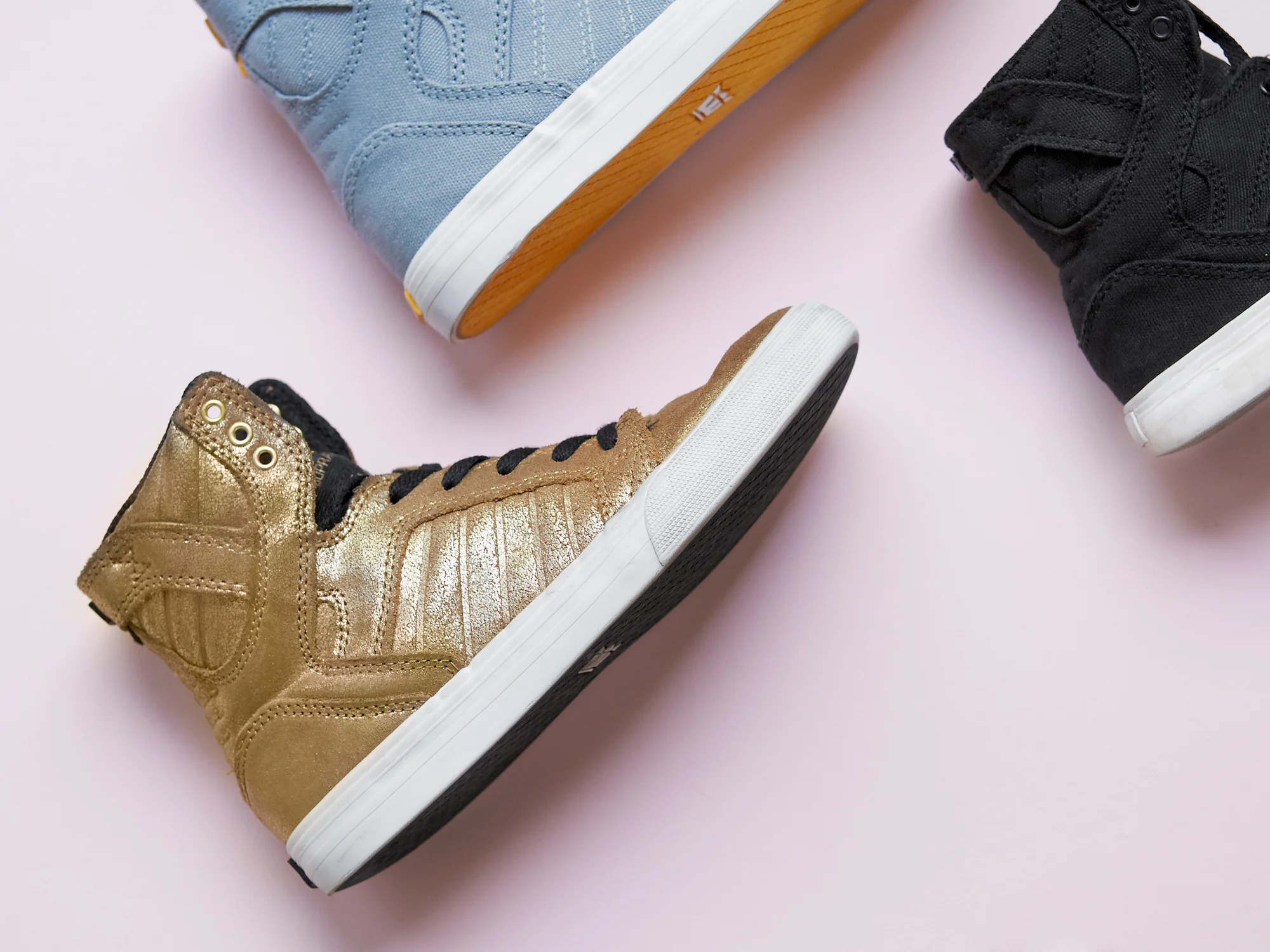 One of our favorite’s is Supra, a line born out of South California skateboard culture with funky silhouettes, unique materials and bold colors. The Kids Vaider style is a more classic style with a hint of old-school, while the Skytop, in futuristic metallics is poised to become Apollo Rossdale’s future obsession. For the more minimally-minded, the Westway offers a hip take on your traditional low-top sneaker.