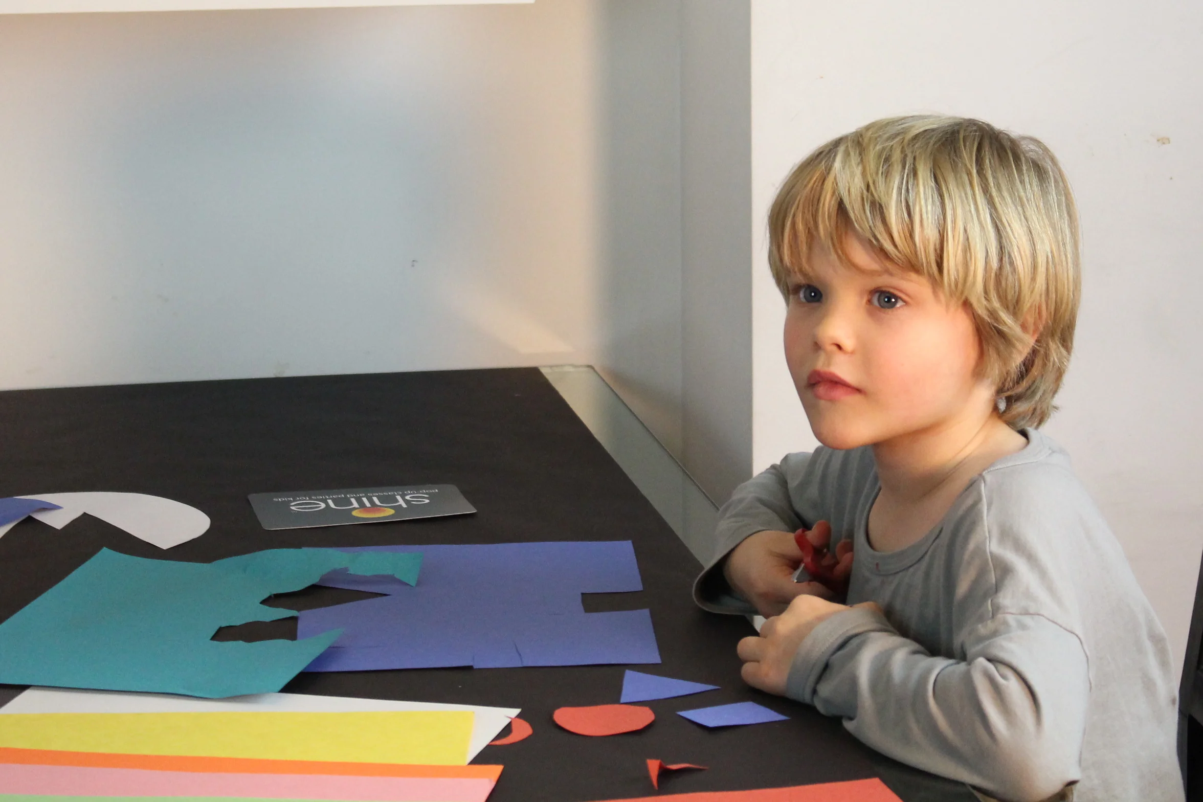 Whether or not his paintings were representational, his imagery was always simple. (Remind kids who are trying to cut something specific that they can create imagery with how they arrange their shapes.)