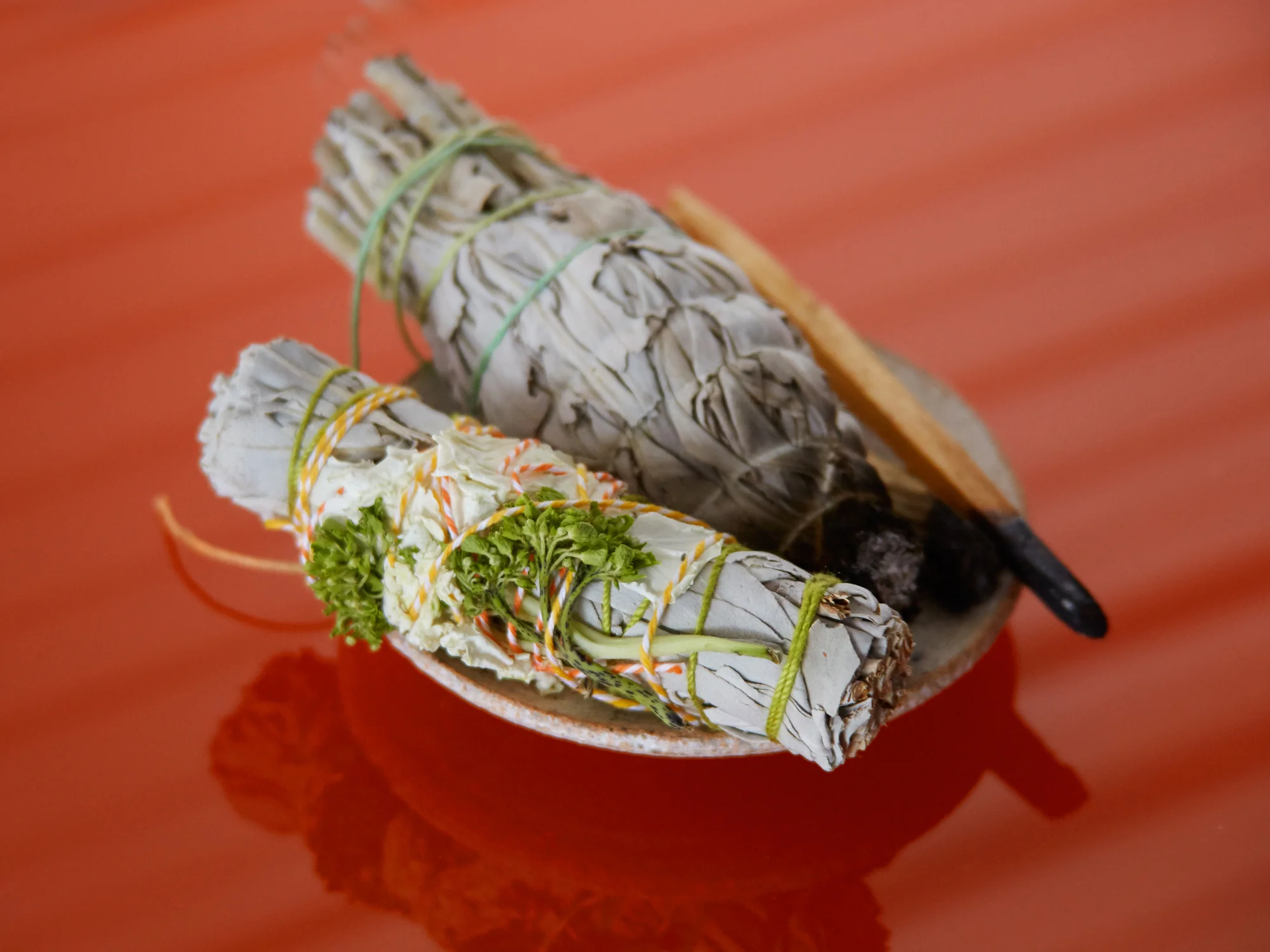 Sage is the most commonly used herb for smudging. The smoke of  sage is intended to heal and purify the mind, body, and environment and clear negative energy. Sage also has a calming effect on our nerves, so it is particularly useful if we’re feeling nervous, angry, or our space feels that type of energy is lingering.
