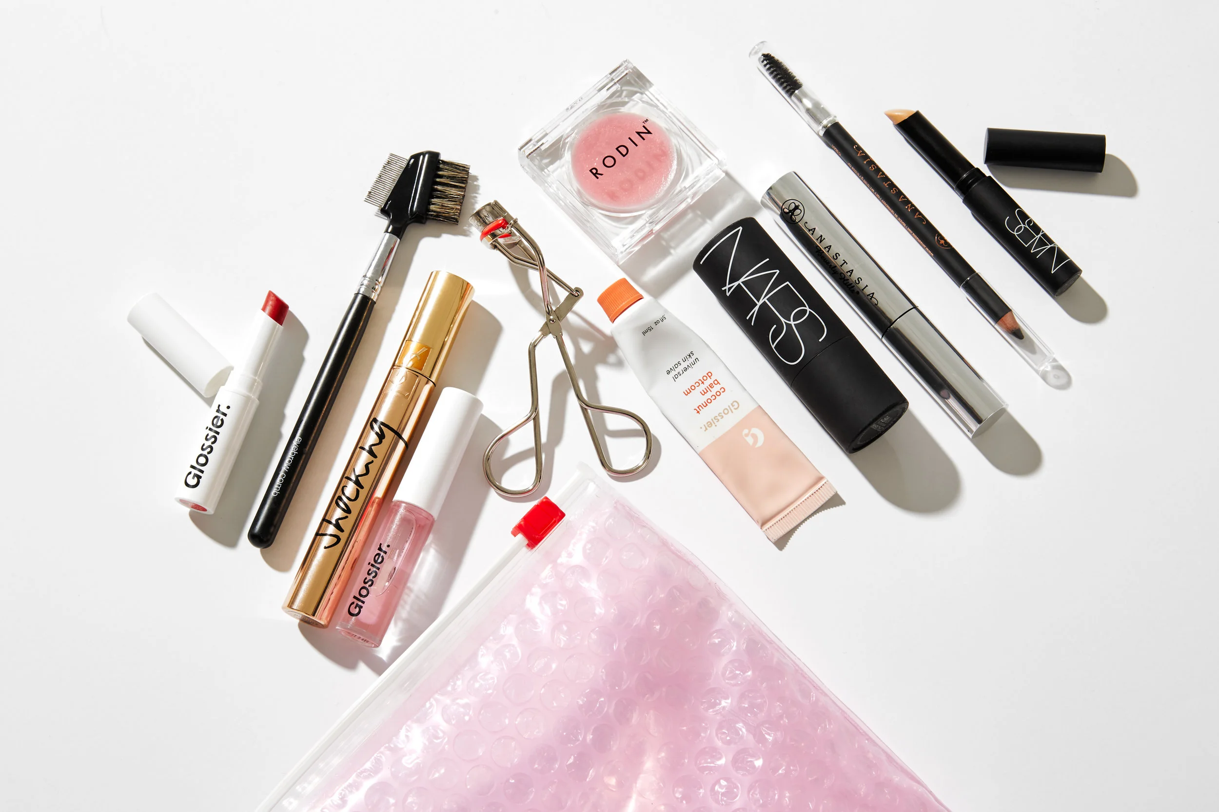Glossier Coconut Balm Dotcom & Lip Gloss | Rodin Lip Balm | Kevyn Aucoin Eyelash Curler | YSL Shocking Mascara | Nars Copacabana Multiple | Nars Concealer | Shu Uemura Mascara Brush/Comb | Anastasia Brow Pencil & Clear Brow Gel