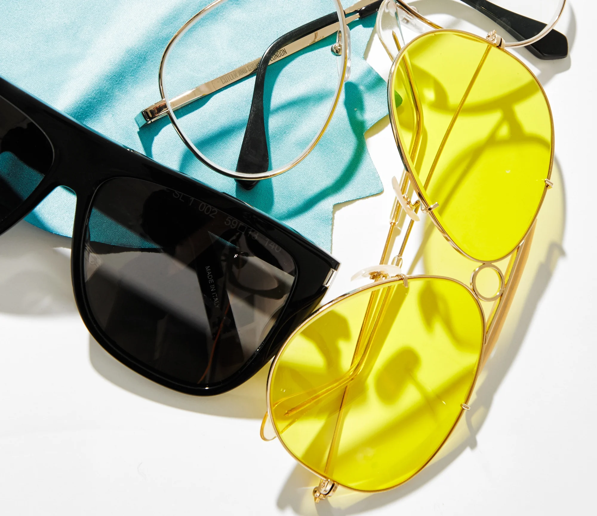 Eye Glasses by Culter & Gross | Yellow Vintage Sunglasses by Ray Ban | Black Sunglasses by Saint Laurent