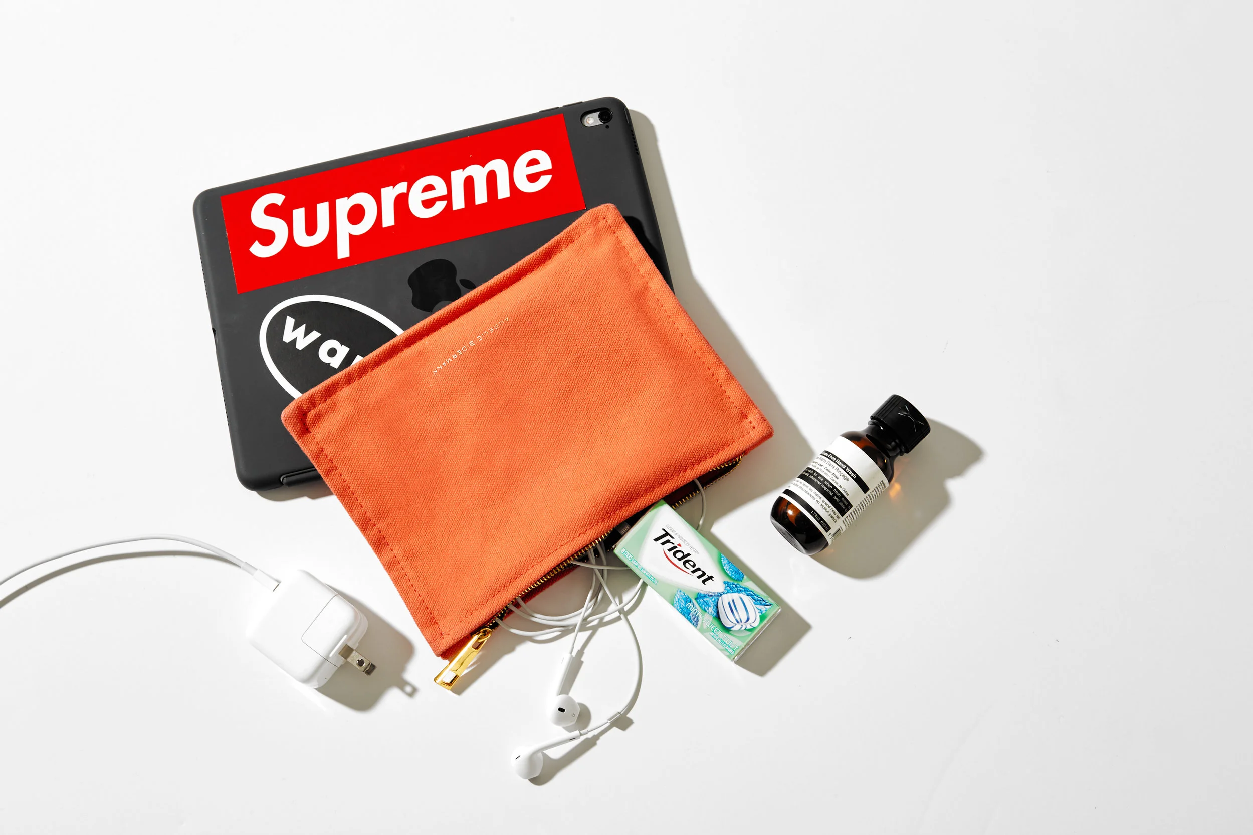 Pouches by Aurelie Bidermann | Hand Sanitiser by Aesop | All Electronics by Apple