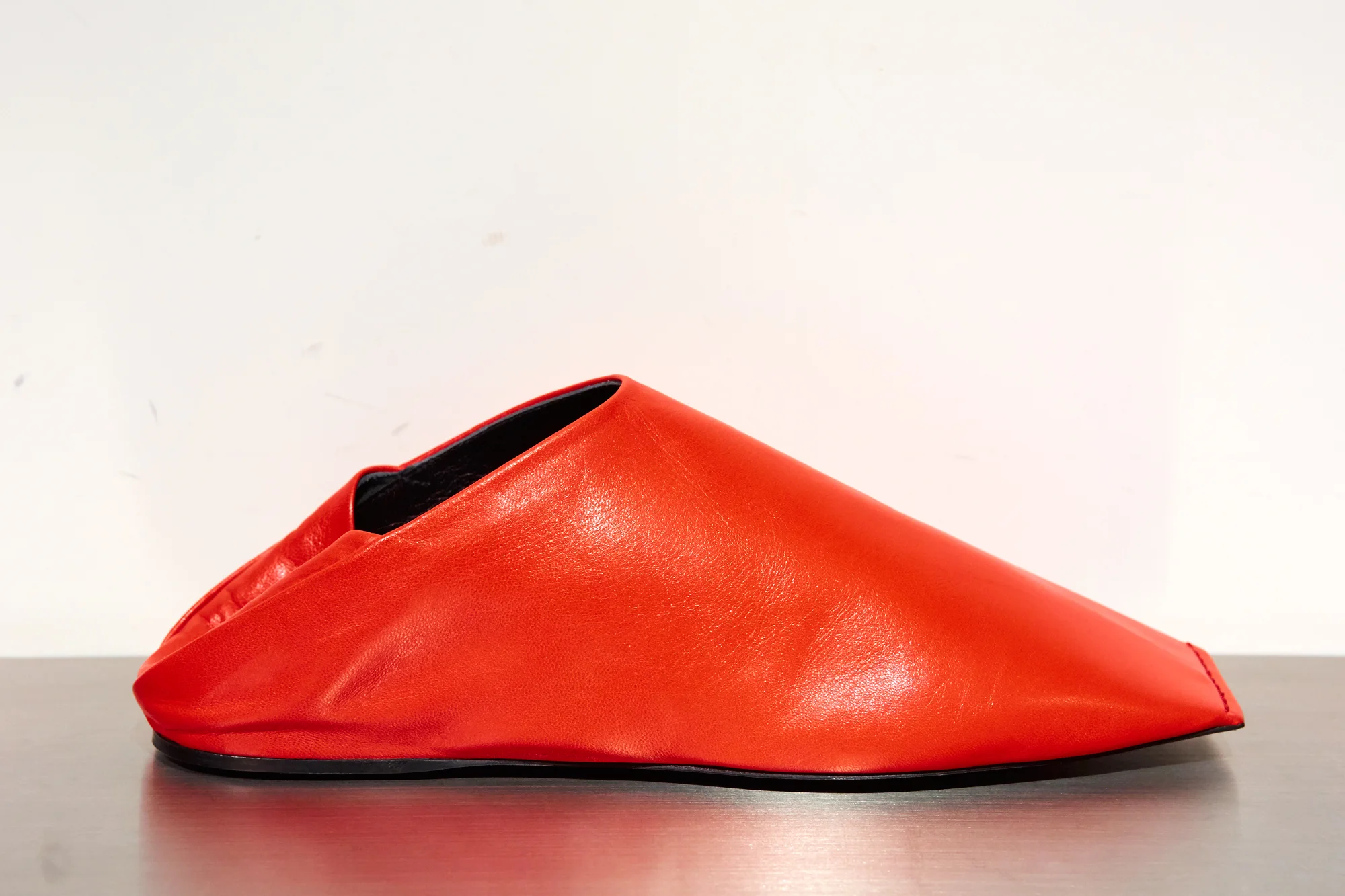 “This red flat has the softest leather and the square toe fits much better on the foot. The overall them is a continuation from fall and it's all about comfort and versatility.”