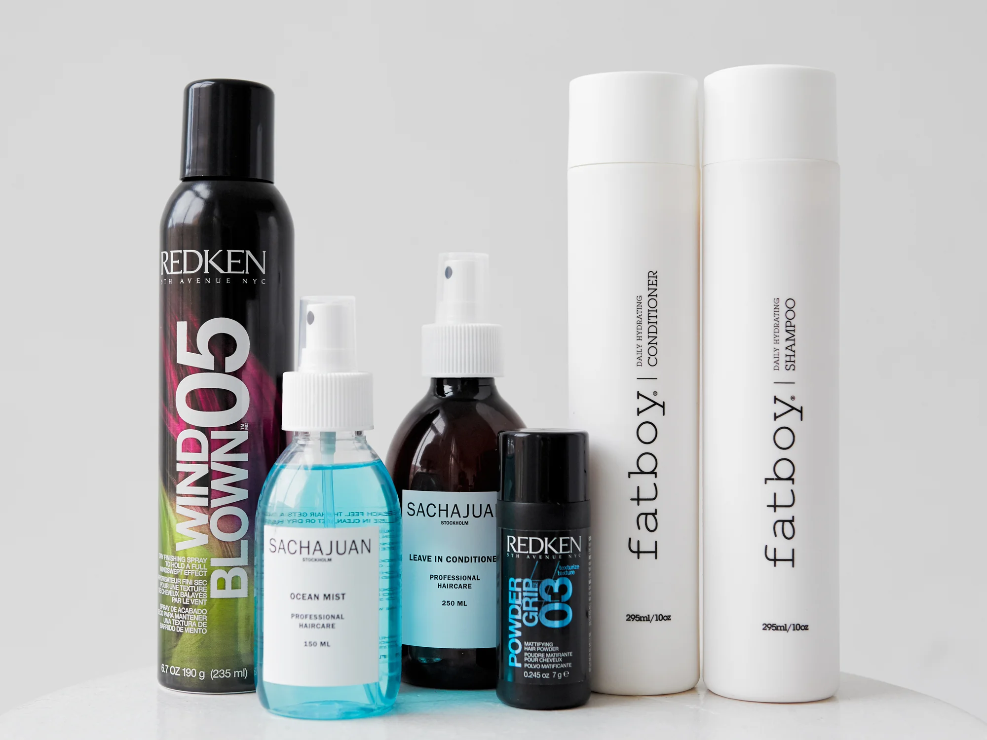 Sachajuan Sea Salt Spray | Sachajuan Leave -in Conditioner | Redken Power Grip | Fatboy Shampoo | Fatboy Conditioner | Harry Josh Hot Tools | Amika Blow Dryer