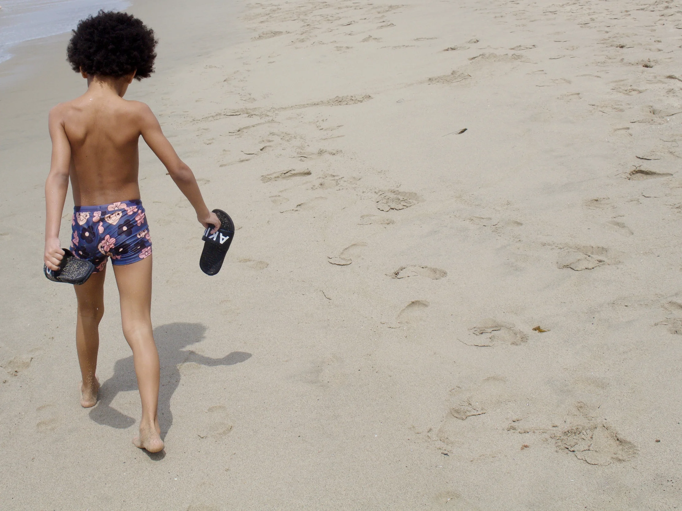 Floral Swim Shorts by Mini Rodini | Sandals by Akid