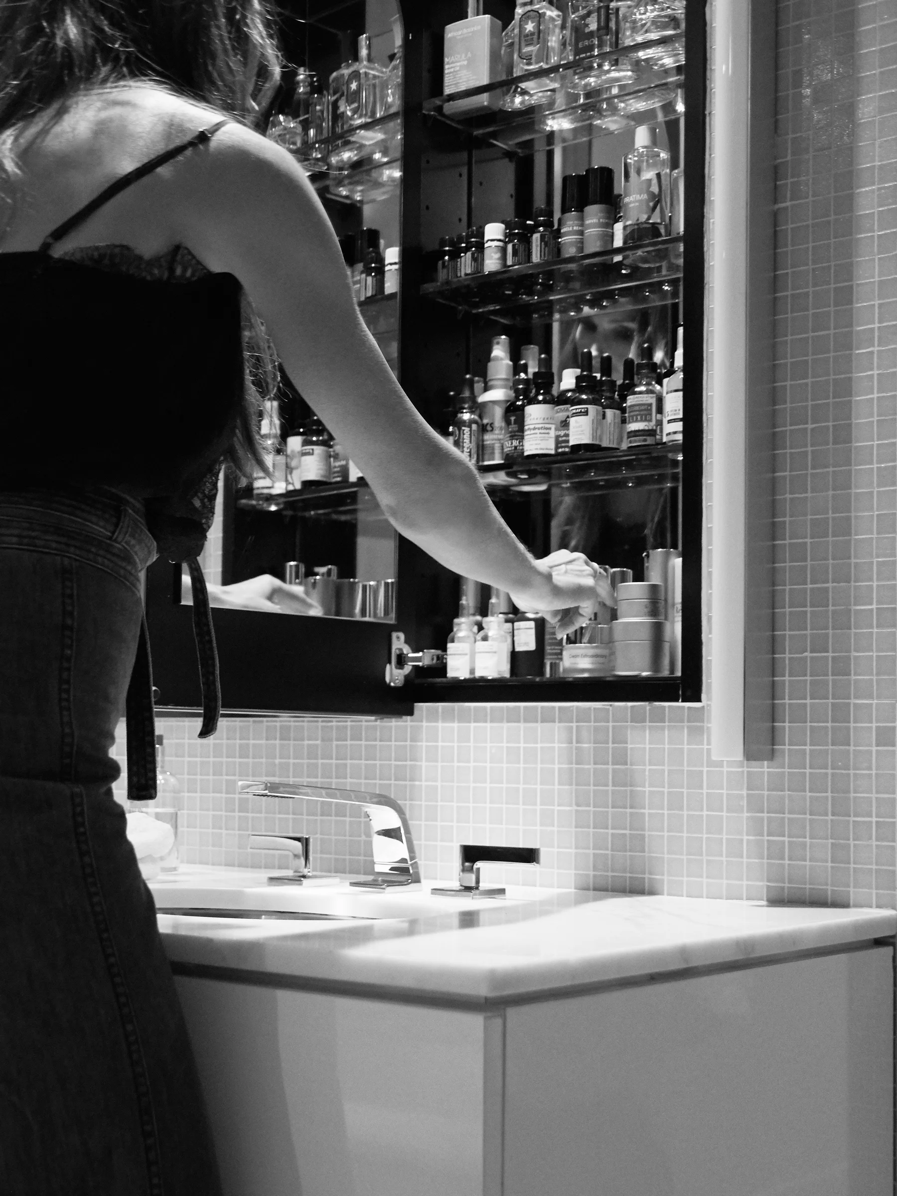 I keep my cabinet simple and organized with products that I use daily. When I turned 40, I freaked out and knew it was time to step up my game with skin care.