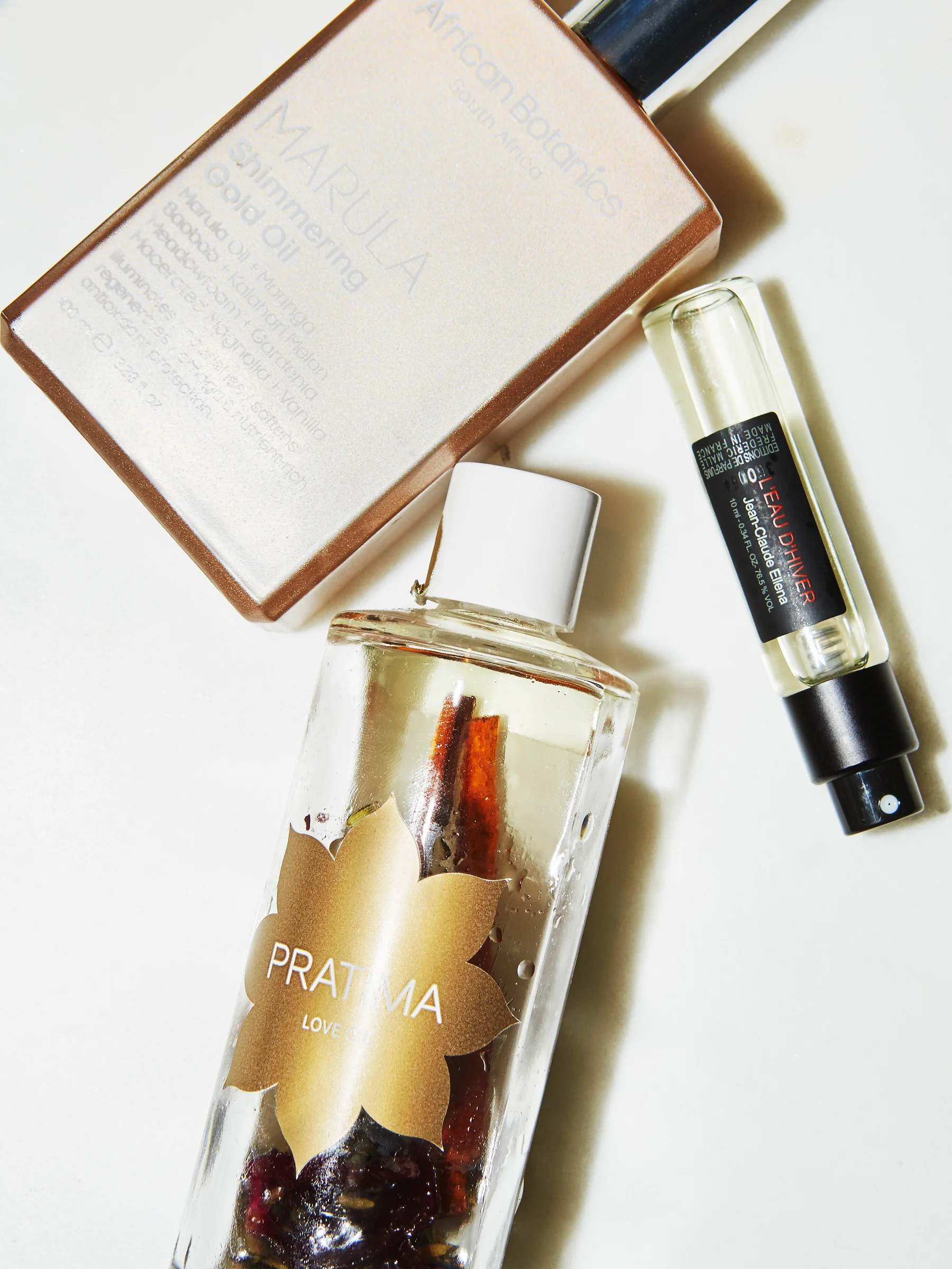 Marula Shimmering Gold Oil by African Botanics | Love Oil by Pratima | L'Eau d'Hiver by Frederic Malle
