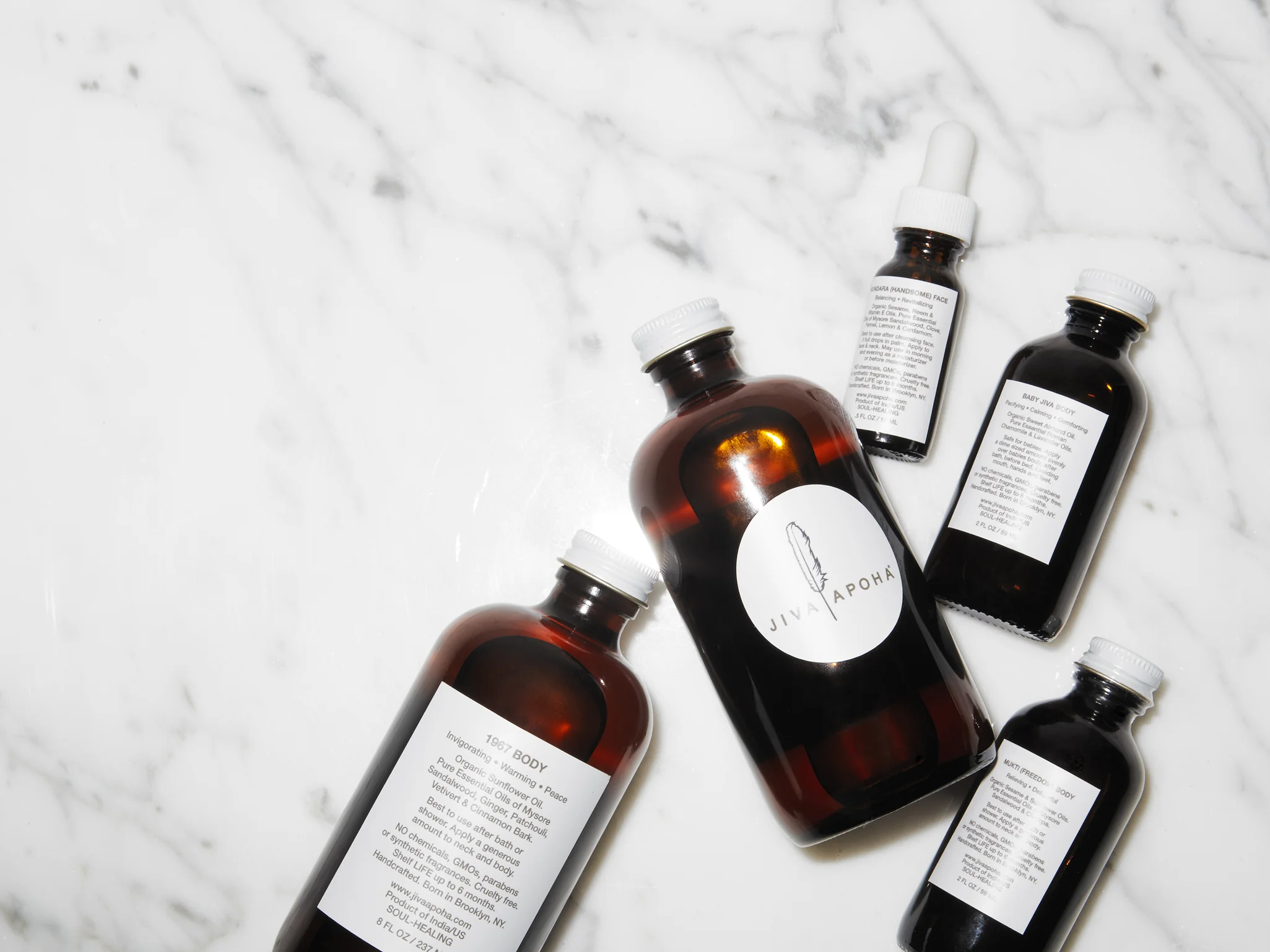 Jiva-Apoha oil blends are created with a feeling that resonates a story; each chosen oil essentially make up’s the unique healing properties. A day in the lab requires devoted attention as each is bottle is made by hand with clarity. It’s a soothing joyful rhythm; where energy exudes within on the receiving end.